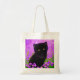 Tote Bag com um gato Gustav Klimt! Este gatinho fluffy fica num campo verde de flores roxas. Um presente perfeito para amantes de gatos e entusiastas de arte austríacos!