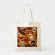 Fundo cor de laranja com fantasmas assustadores, crânios, morcegos e bombas