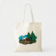 Uma pequena casa de madeira na floresta entre as árvores. Este design parece realmente eficaz nesta Tote Bag