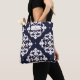 Um bolsa para os professores que caracterizam um design azul do ikat. Personalize o texto dentro do retângulo superior com ilustração cor-de-rosa da maçã.
