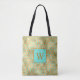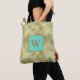Um adorável design com tema animal, esta bolsa de tote mostra impressão de girafa com pontos ouros sobre um fundo de menta. Um monograma inicial, ordene o seu hoje!