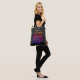 Impressão de pata arco-íris néon brilhante sobre fundo de tijolos de cinza escura.