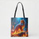 Esta imagem cativante apresenta um gato parado entre as chamas, banhado no brilho quente do fogo. Os elementos místicos e de fantasia da cena evocam um sentimento de encantamento, à medida que o pelo do felino brilha no céu. É um visual poderoso que combina a feroz e mágica, criando uma imagem inesquecível de maravilha e intrigas.