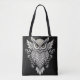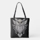Saco decorado com uma ilustração deslumbrante e detalhada da coruja com padrões intrincados do estilo mandala e elementos elegantes de espiral. Este design captivador fará com que o seu saco de tote seja único e único