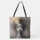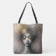 Uma face serena com olhos fechados é adornada com pestanas delicadas, com acento dourado e cercada por cabelo intrincado e saboroso