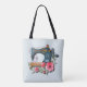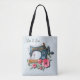 Bolsa Tote Knit da Máquina Floral Azul Laranja