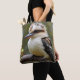 Elevem suas essências diárias com esta bela bolsa de tote com uma kookaburra agitada graciosamente em um galho. Conhecido como o "pássaro rindo" da Austrália, o kookaburra traz um toque de charme e chorão para o seu dia.