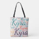 Kyra. Mostre e vista este famoso e belo nome feminino desenhado como uma nuvem de palavras colorida feita de tipografia cursiva horizontal e vertical de letras de mão em diferentes tamanhos e cores frescas adoráveis. Vista seu nome americano positivo ou mostre o mundo que você ama ou ama. Merch com este trabalho de arte de texto suave é um presente de excelente, não apenas no mês de história das mulheres, ou presente de aniversário.