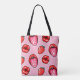 Lábios cor-de-rosa e saco de morango concebido para toalhas