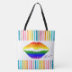 Lábios do Arco-Íris e Stripes O bolsa clássico com uma reviravolta moderna: a impressão em todas as partes permite uma personalização de 100%, elevando o bolsa básico ao próximo nível. Sua próxima viagem de compro ficou um pouco mais amigável e muito mais na moda!
