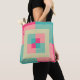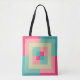 Esta imagem é um desenho abstrato geométrico com camadas quadradas concêntricas que espiralam para dentro. Os quadrados são feitos de cores ousadas e contrastantes: amarelo, laranja, vermelho, verde-oliva e roxo profundo. Cada quadrante alterna de cor, dando ao design um efeito dinâmico e quase óptico semelhante a ilusão. A combinação de tons quentes e legal cria um sentido de profundidade e equilíbrio.