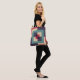 Esta imagem é um desenho abstrato geométrico com camadas quadradas concêntricas que espiralam para dentro. Os quadrados são feitos de cores ousadas e contrastantes: amarelo, laranja, vermelho, verde-oliva e roxo profundo. Cada quadrante alterna de cor, dando ao design um efeito dinâmico e quase óptico semelhante a ilusão. A combinação de tons quentes e legal cria um sentido de profundidade e equilíbrio.