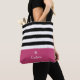 Bolsa Tote Largo Preto Horizontal Stripes Cor-de-rosa Escuro