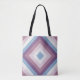 Esta imagem apresenta um padrão geométrico vibrante com formas concêntricas de diamante criadas por faixas diagonais grossas e espaçadas uniformemente. As cores alternam em uma sequência em negrito — roxo, magenta, laranja, amarelo e verde — radiando para fora do centro. A simetria repetitiva e a paleta brilhante evocam influências retrô, psicodélicas e pop, enquanto a mudança gradual de cor cria um efeito de ilusão óptica impressionante, desenhando o olho do espectador em direção ao centro.