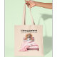 Este é um design para amantes de livros, este saco de livros mostra um cão lendo na cama, ele é um librocubicularista, que é o termo para descrever alguém que gosta de ler na cama.