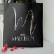 Flores silvestres vermelhos com aquarelas monograma inicial da caligrafia M. Saco preto com letra branca e flores vermelhas. Perfeito para presente monograma.