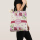 Esta bolsa de tote bonito apresenta lírio aquoso e flores de pénia sobre fundo amarelo-limão macio. Você pode personalizar o monograma com seu próprio nome e inicial.