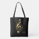 Uma clave moderna de ouro brilhante com notas sobre fundo preto. Monograma opcional