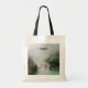 Um saco de tote com uma fotografia incrível. Uma visão aérea de algumas cachoeiras que respiram cercadas por uma floresta verde de árvores e montanhas.