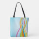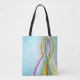 Um design de linhas do arco-íris é colorido em azul. Este design parece realmente eficaz nesta Tote Bag