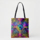 Bolsa Tote Linhas de Neon Psicodélicas com Arte Flor