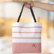 Bolsa Tote Listras Monograma Modernas Elegantes em Rosa