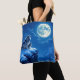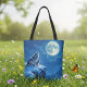 Saco de tote de lobo. Uma ilustração com lobos uivando na lua de cheio numa noite fria de inverno em pé sobre um penhasco.