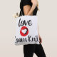 Texto na frente com um grande coração vermelho "Love Loom Knitting". Comprando o saco de tote. Excelentes para fios ou vassouras de carregar. Ponha o trabalho em andamento e vá embora. Dar uma ideia a uma pessoa que o Loom tricotou. Também é bom para compro de mercearia ou livros padrão.