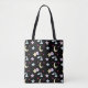 Bolsa Tote Lua branca, estrelas e nuvens padrão em preto
