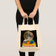 Bolsa Tote Lua cheia, crânio e abóbora azul à noite.