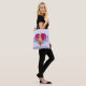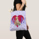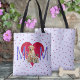Saco de tote, presente personalizado para a mãe. Design de laboratório amarelo é um modelo onde uma foto pode ser adicionada para substituir o cachorro. Carregue a sua foto especial de estimação, ou uma foto das crianças. Design púrpura e vermelha com "M" grande e um coração vermelho no centro. Corações vermelhos minúsculos cobrir a bolsa em ambos os lados sobre uma cor de lavanda muito pálida. Esta bolsa está alinhada e tem tiras pretas.