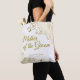 Esta bolsa de tote da Mãe do Chalé foi projetada como um favor ou presente especialmente para a Mãe do Chalé. Saco de excelente para encher com favores e presentes. Coordena-se com nosso pacote de casamento elegante de folha de ouro e é totalmente personalizável. Design simples inclui texto dourado com borda floral sobre fundo branco. Todo texto é personalizável.