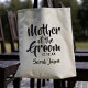 Trate a Mãe do Chalé com um saco de tote personalizado. Apenas adicione o nome dela e a data do casamento. Ela vai adorar!