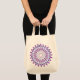 A Magic mandala Tote Bag apresenta uma mandala colorida moderna. O padrão meditativo de Mandala foi criado para trazer alegria e bom feng shui. Design combina padrões geométricos e cores brilhantes - roxo, rosa e azul