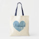 Malas para tote marinho azul-marroquinhas personalizadas. Belo vintage, algemado, parece design com texto elegante e nome personalizado. Faça um com o nome de damas de honra, florista, madrinha de casamento, matrona de honra, mãe da noiva etc. Design para festa de casamento, festa de noiva ou festa de solteiro. Cores do tema da praia náutica.
