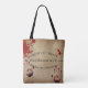 Esta bolsa de tote personalizada apresenta um tema assustador de Halloween. O fundo é uma cor castanha vestida e suja, com manchas de sangue espalhadas sobre ela. Duas malditas impressões de mão estão na parte inferior. Um nome de compro de marcador de amostra é impresso próximo à parte superior, que você pode personalizar para incluir seu próprio nome e texto personalizados.