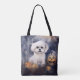 Bolsa Tote Maltês do Dia das Bruxas com Pumpkins assustado