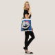 Pintura de uma Mãe e Filha se abraçando. Seu vínculo de amor é mais forte, e longo, como as estrelas, e o Universo. Seu vínculo é eterno. Bonita em toda a mala impressão mediana de tote! Bom para mercearias de carregando, livros, praia ou coisas de ginástica. Copyright Trabalho de arte por Debra Carr