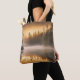 Rio corre entre pinheiros enormes, Mist sobe da água fria da manhã até os pinheiros