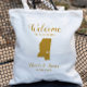 Saco de presentes de boas-vindas para convidados fora da cidade para o seu casamento, com a imagem do Mississippi, com o coração que você pode colocar no local exato. Preencha a bolsa com seus doces favoritos.
