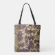 Esta bolsa de tote apresenta uma bela design de ouro ornamentado e máscaras de cor roxa do Mardi Gras em um fundo de ouro falso. Projetado pelo artista © Tim Coffey.