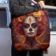 Cultura de carregares e beleza com você aonde quer que você vá com a bolsa de tote do Espírito Marigold. Esta design impressionante mostra uma espantosa mulher do crânio de açúcar Día de los Muertos coroada em marigóis laranja vívidos, simbolizando a memória, a vida e a honra. Perfeito para festivais, recados diários ou fazer de uma declaração artística, esta bolsa durável e espaçosa combina praticidade com estilo ousado e espiritual. Um belo presente para amantes da herança mexicana, elegância gótica, ou simbolismo sagrado - esta bolsa é um tributo vestível à tradição do eterno.