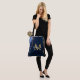 Esta bolsa apresenta um fundo de mármore agamado elegante e glamouroso com detalhes geodésicos de gemstone e sotaques dourados falsos. O monograma combina o guião manuscrito e as fontes sans serif modernas para um aspecto elegante e sofisticado. Isso fará o presente ideal, pois ele pode ser personalizado com um nome e uma inicial. As matizes azuis fazem-no perfeito para o outono e o inverno.