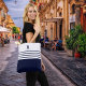 Bolsa Tote Marinho de Monograma Chic Blue Striped