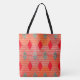 Saco de tota impresso numa abstrato, na Moderna do século do Médio, impressão de dobra em forma de diamante, com textura horizontal listrada, em tons de laranja de coral, tangerina e laranja pastel, acentuados com cinzas/cinzas e creme