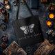 Memento Mori Tote Bag. © Desejos do Coração Escuro. Este saco de tote gótico é preto com uma traça e Memento Mori em branco.
