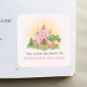 Esta bolsa de tote de garotas bonitinhas e caprichosas apresenta um castelo encantado rosa, com príncipe e princesa, e espaço para adicionar um nome em tipografia elegante. O perfeito design mágico para qualquer criança ou adulto adorável!