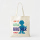 Sacola feita sob encomenda dos meninos da silhueta do super-herói do irmão mais novo. A rotulação alaranjada, verde, azul e vermelha soletra-me para fora "é o irmão mais novo" com um nome embaixo. Personalize esta sacola para um presente para um irmão mais novo. Silhueta azul do menino do super-herói com cabo, botas, e mãos nos quadris. Presente do divertimento para um irmão mais novo. Coordenada com um design do big brother. www.SamAnnDesigns.com