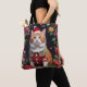 Um gato real vestindo uma fantasia de Papai Noel com fundo floral, design de colheita