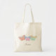 Três pequenas borboletas em pêssego, azul, bronzeada e verde-menta, decorem este pequeno saco de tote usando o nome modelo. Personalize com o nome de uma dama de nozes, madrinha de casamento ou florista, para um presente único "obrigado você". Escolha qualquer saco.